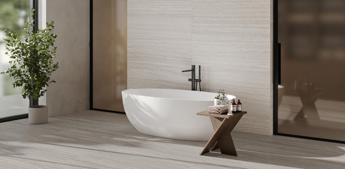 Inspired by the purity and calm of natural travertine, Atlantis fuses the essence of stone with a contemporary approach, resulting in a collection defined by serene lines and refined aesthetics.