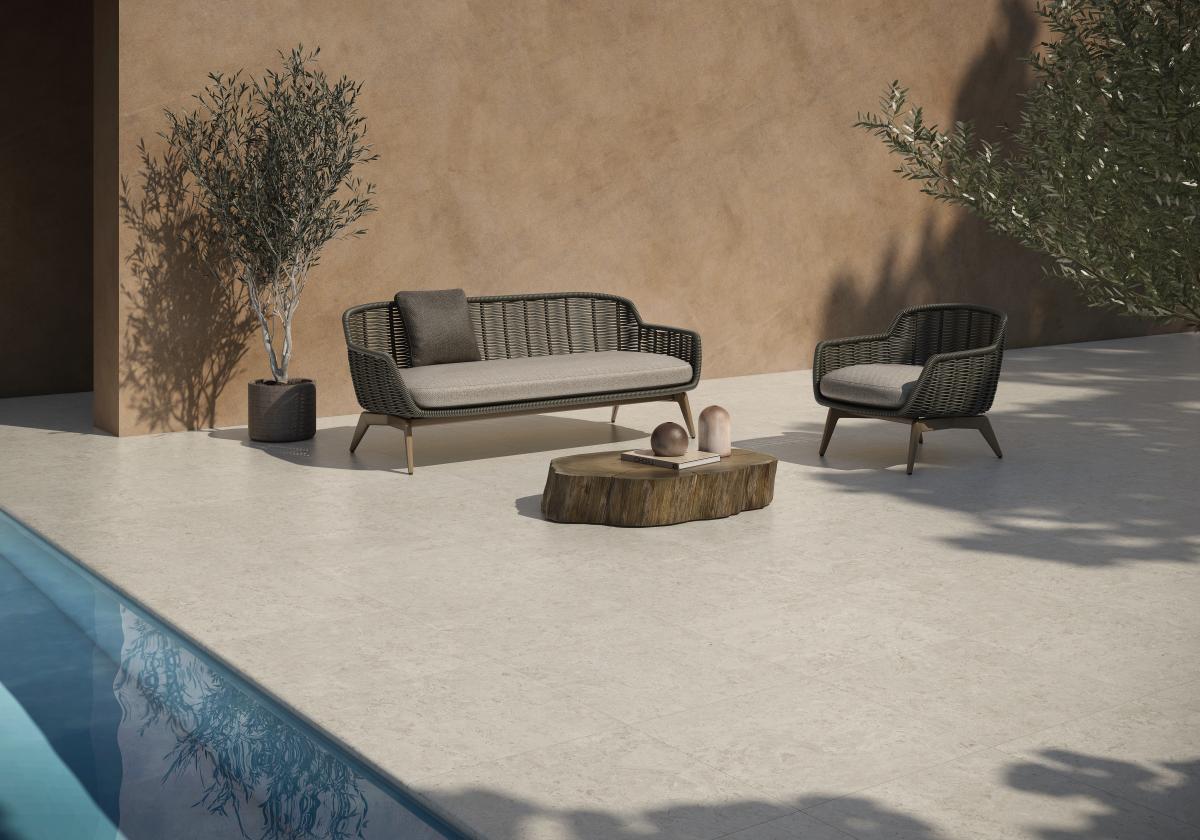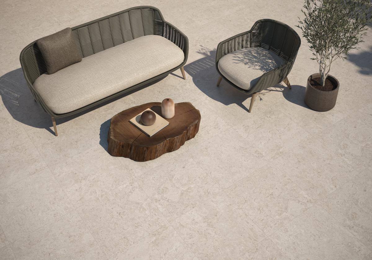 Coral Beach toma como referente la piedra Coralina, una caliza abundante en la República Dominicana y Colombia. Formada en el lecho marino a partir de fósiles, corales y otros organismos marinos, confiere a la serie una belleza única y una historia rica en cada pieza.