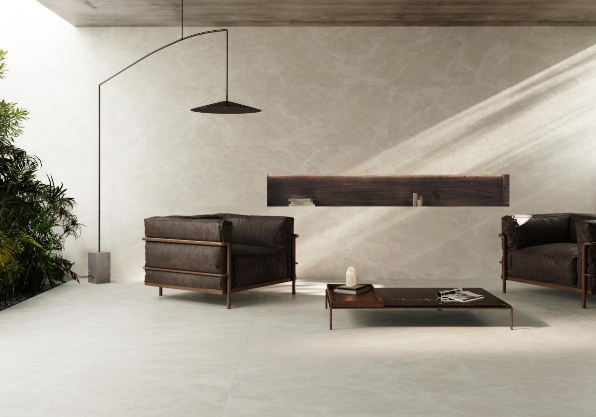 Más que revestir, estructura el espacio mediante textura y color. Disponible en acabado natural y lapado, se adapta tanto a zonas representativas como a ambientes más serenos.