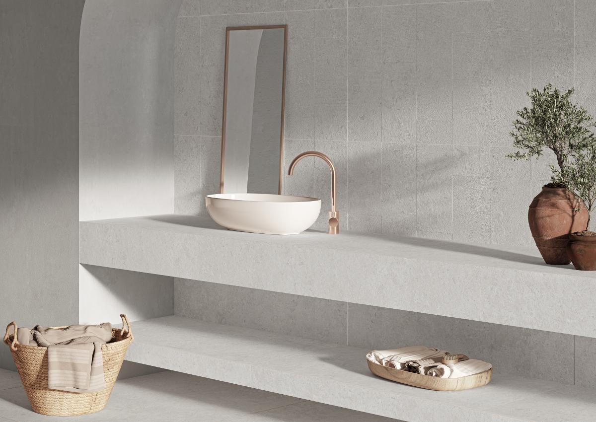 Inspirada en la piedra de Jerusalén, Shalem captura la esencia de la piedra caliza con algunas incrustaciones de conchas fosilizadas, que le otorgan personalidad y carácter únicos.